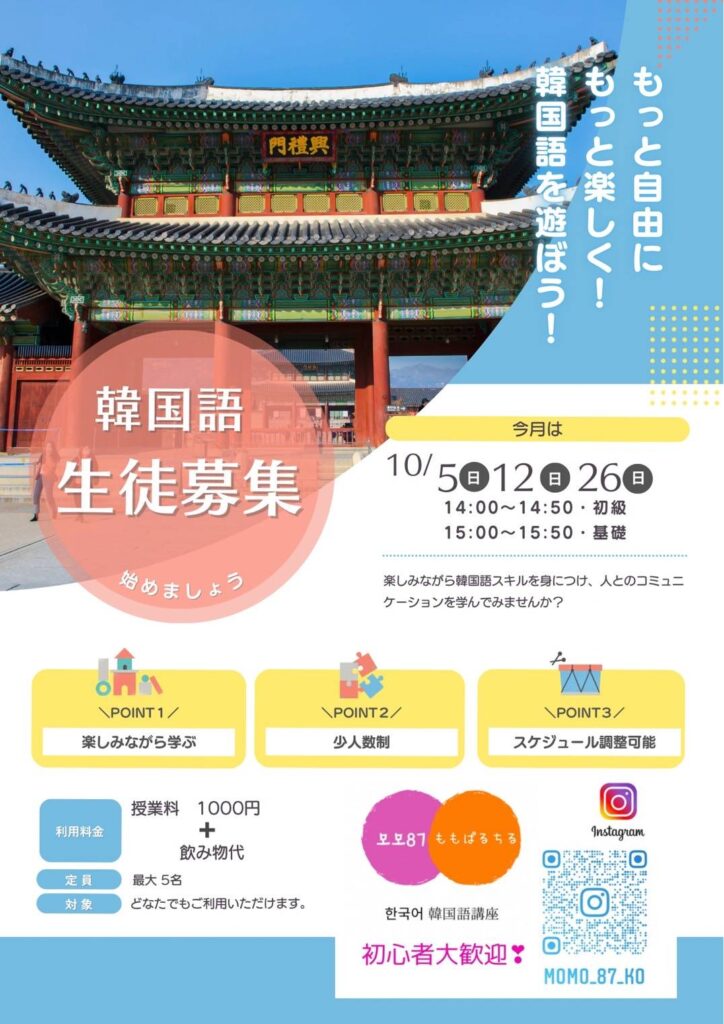 韓国語教室 開催日のお知らせ